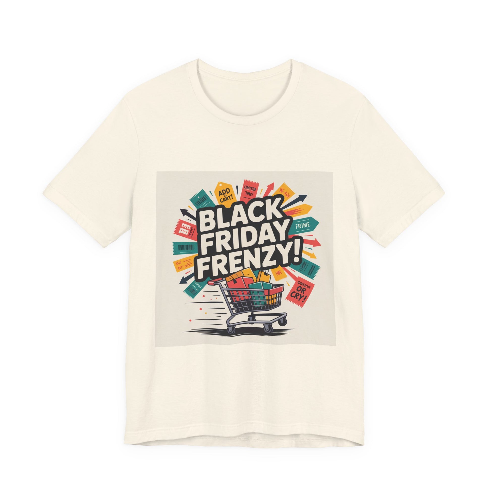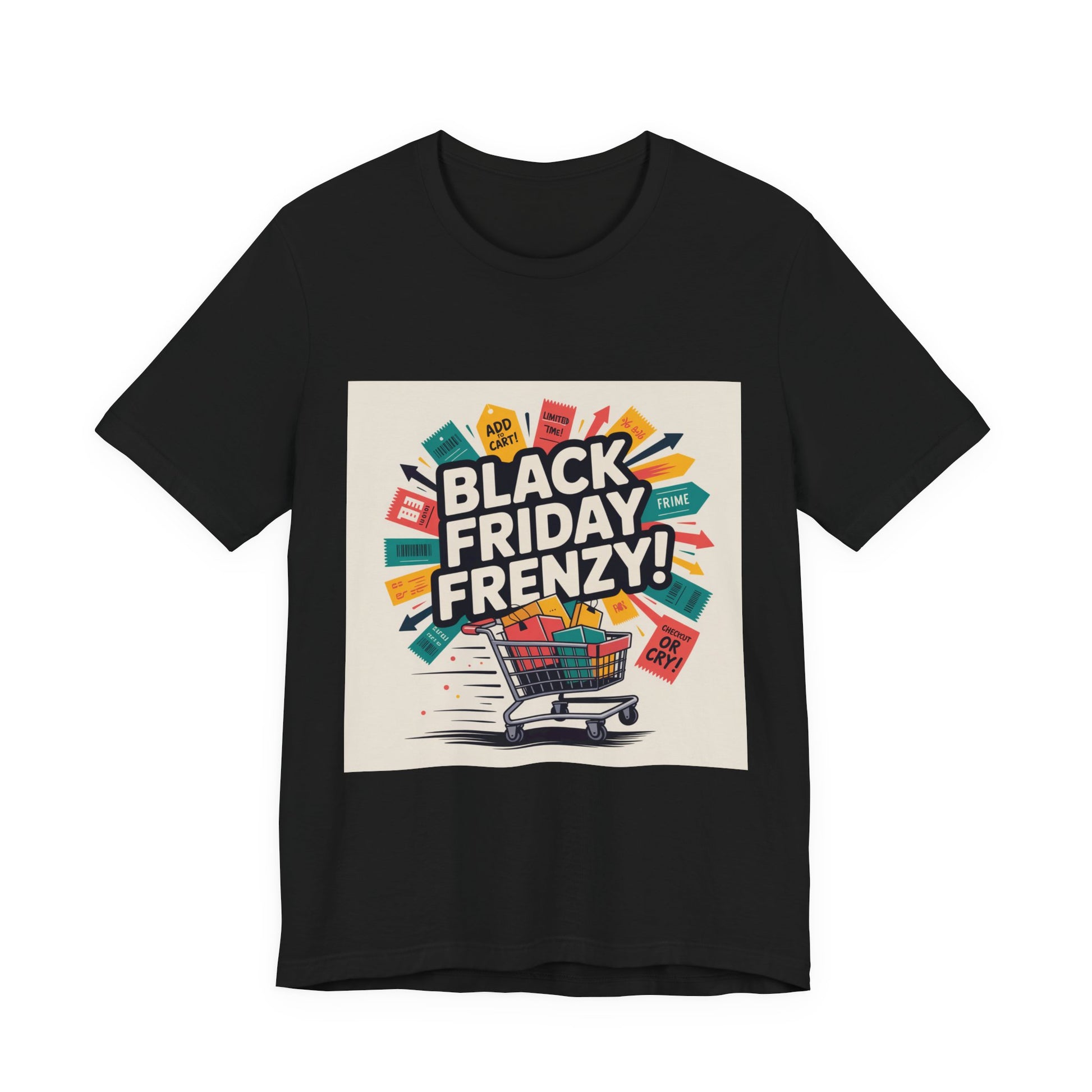 A black Friday shopping-themed t-shirt perfect for the shopping enthusiasts. This unisex jersey short sleeve tee is made with 100% Airlume combed and ring-spun cotton, offering a lightweight and breathable fabric. The retail fit and classic crew neckline make it versatile for casual and semi-formal settings, ideal for layering or accessorizing.