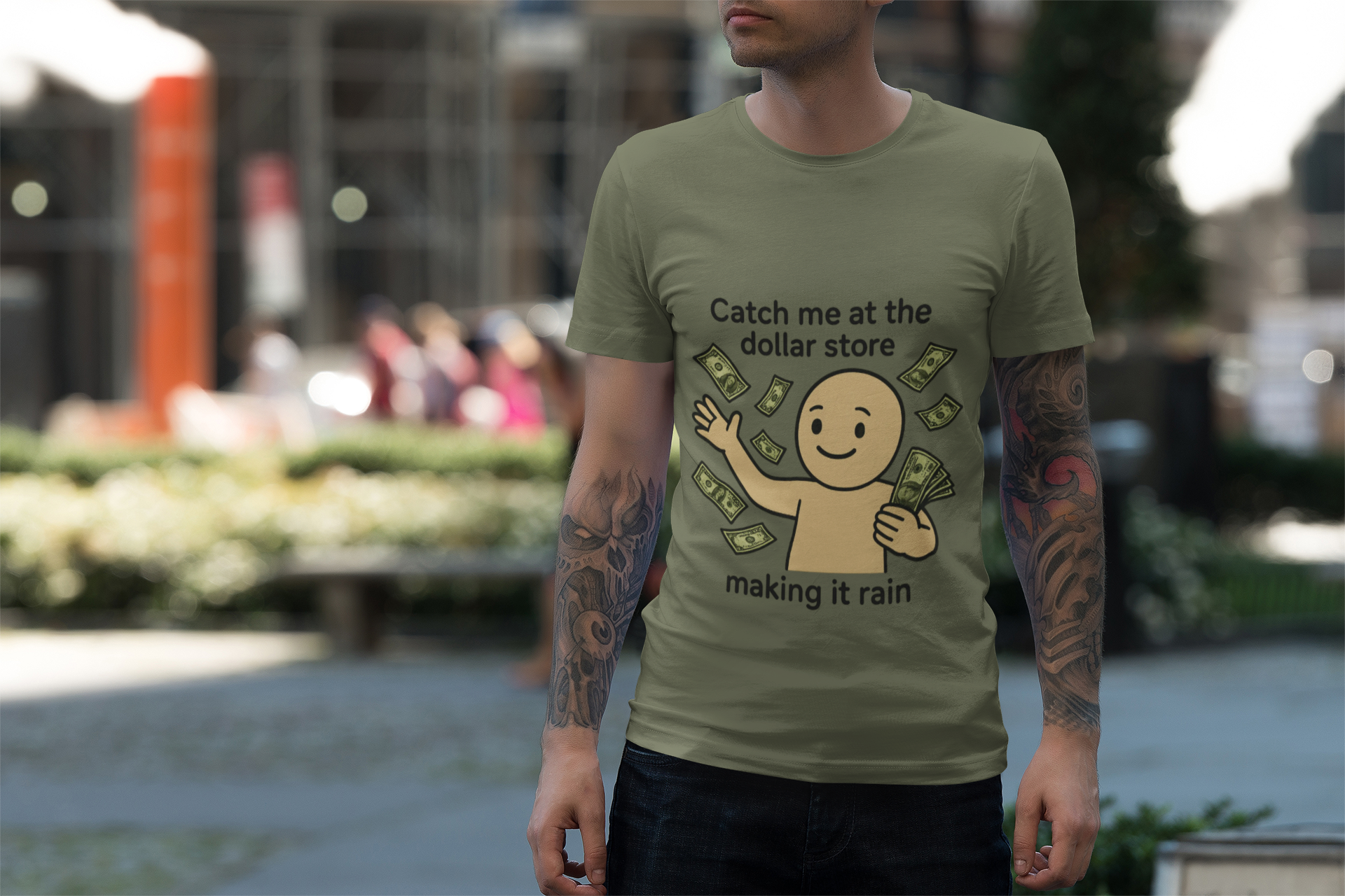 Embrace a playful vibe with this Unisex Softstyle T-Shirt, perfect for anyone who loves to express their humor and personality through fashion. Its fun design featuring a cheeky character making it rain dollar bills is sure to bring smiles and laughs wherever you go. Ideal for casual outings, parties, or relaxed weekends, this shirt fits seamlessly into your wardrobe, making it a versatile choice for any occasion.