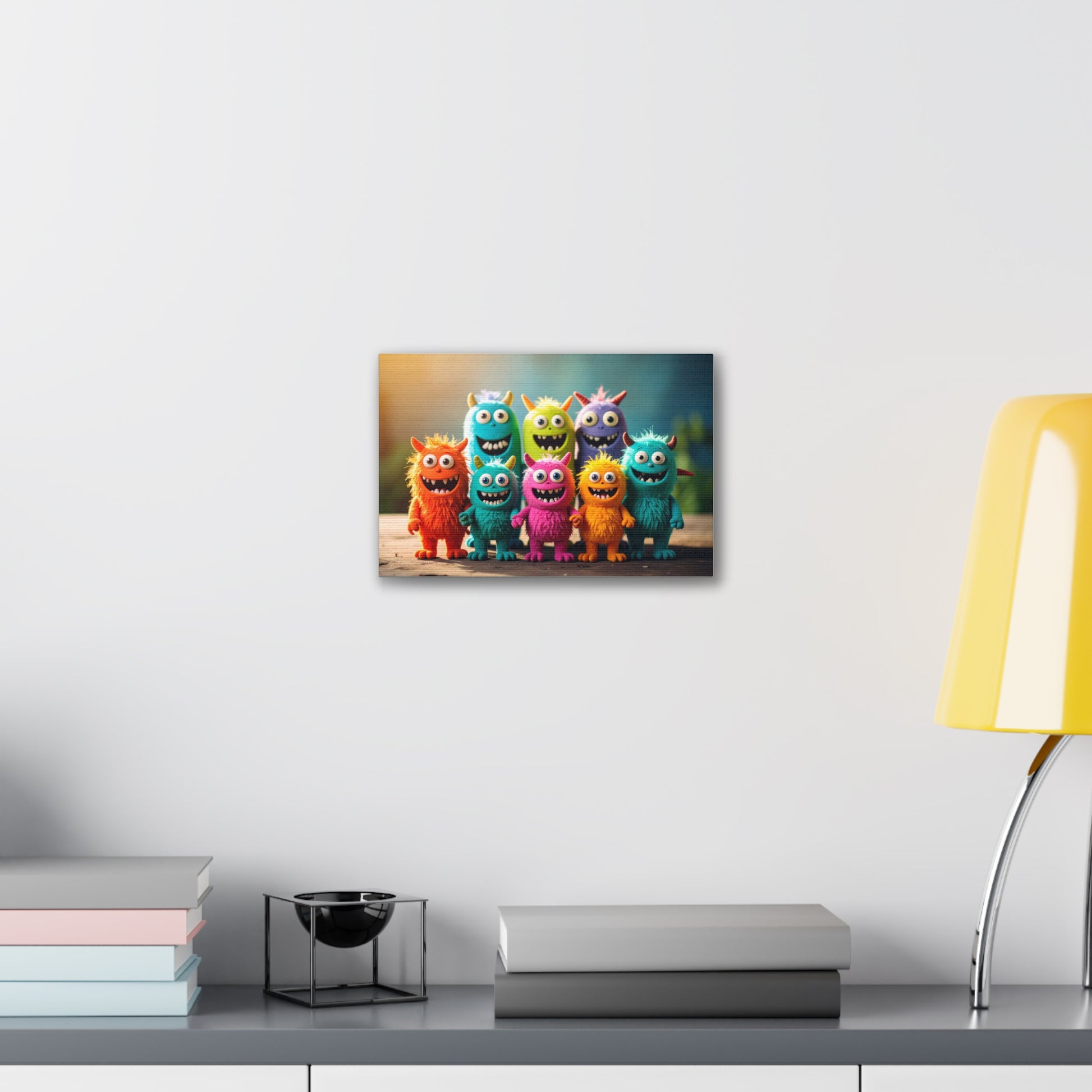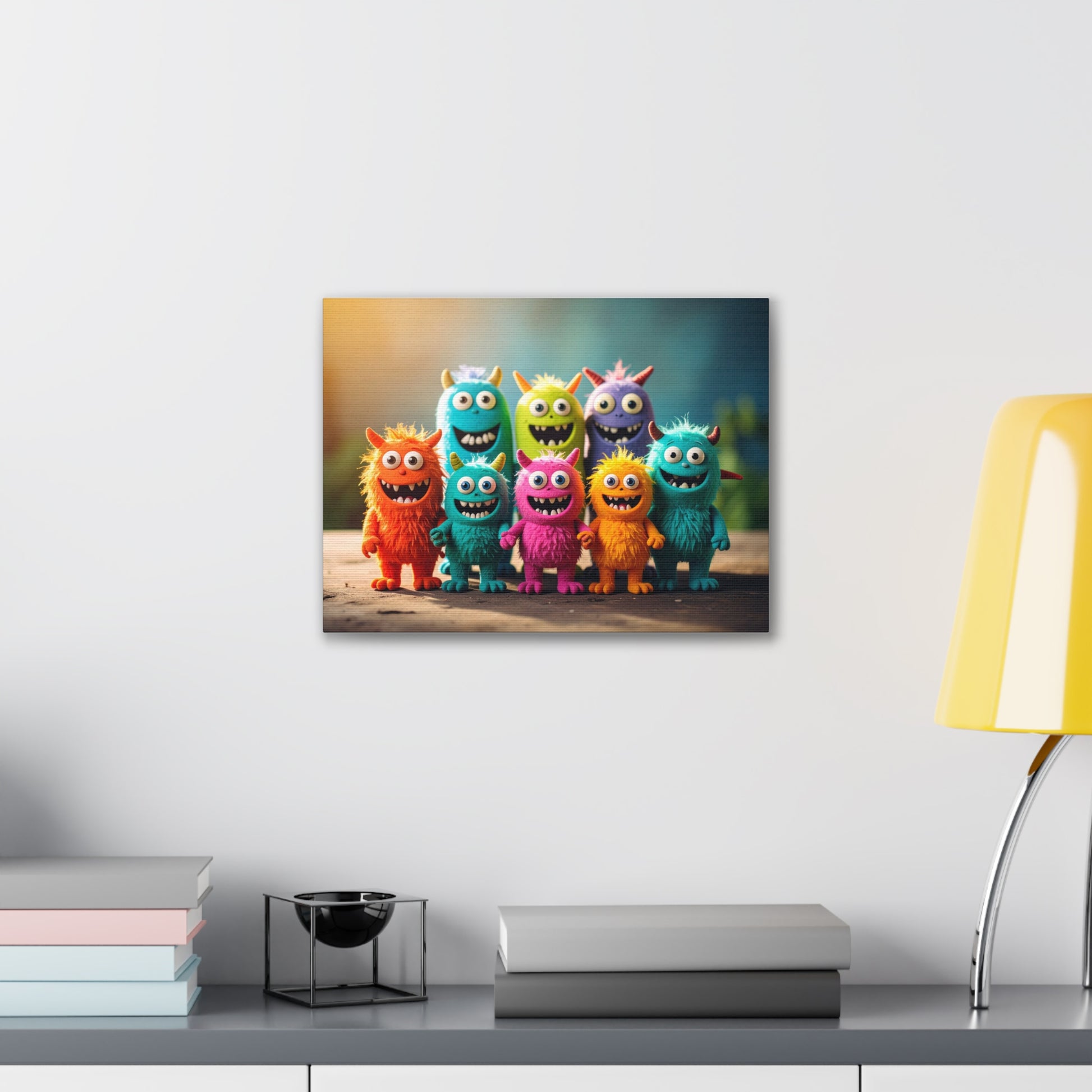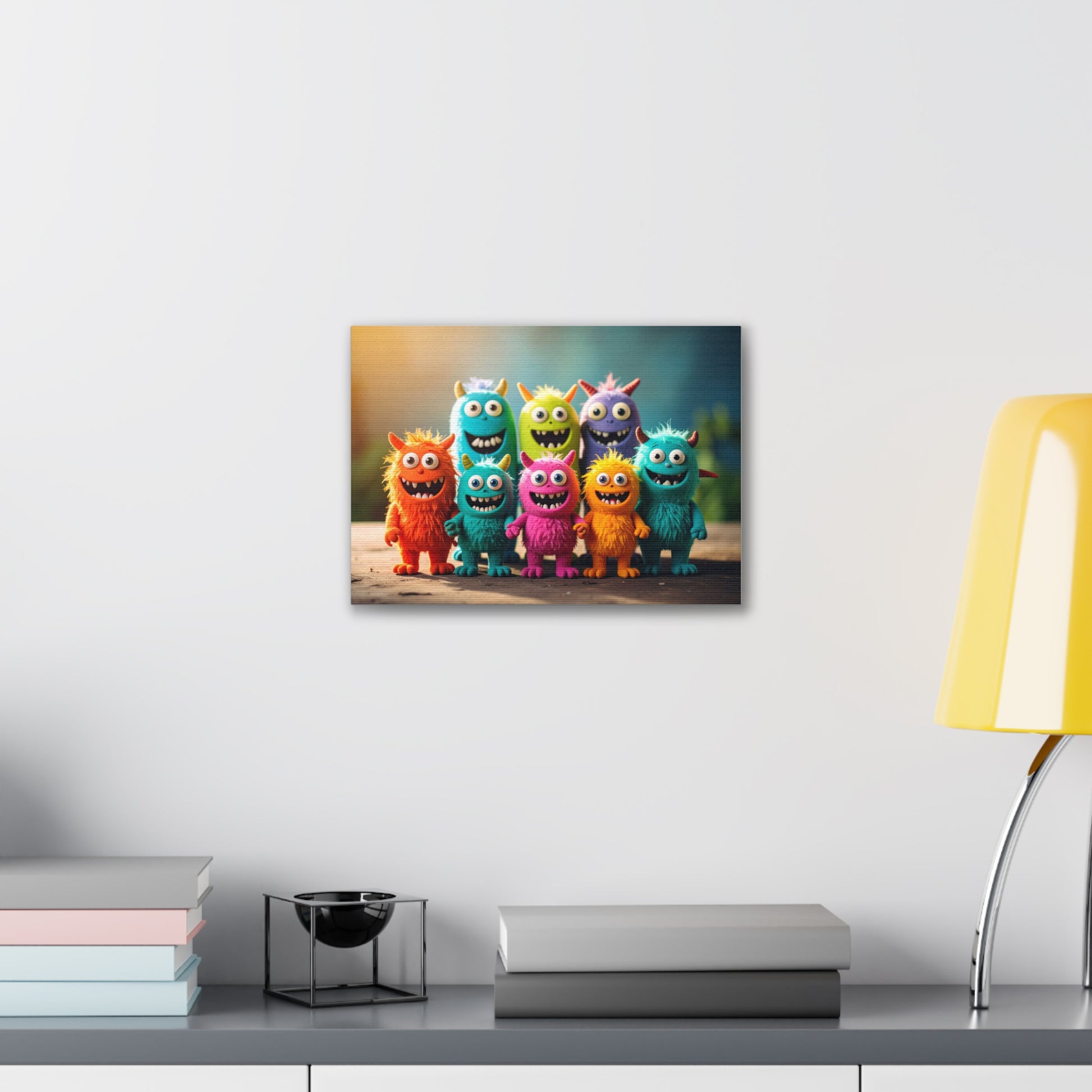 Brighten up your walls with this vibrant Canvas Print! Perfect for adding a touch of fun and whimsy to your home, this eye-catching artwork features adorable, colorful monster characters that are sure to bring a smile. Ideal for children's rooms or play areas, this canvas is perfect for those who appreciate playful decor. It creates a cheerful atmosphere, making it an excellent gift for birthdays or any celebration that calls for a burst of joy. With versatile sizing options, you can find the ideal fit for your space. This canvas print is not just a decoration; it's a source of laughter and warmth, perfect for families, kids, or anyone young at heart.