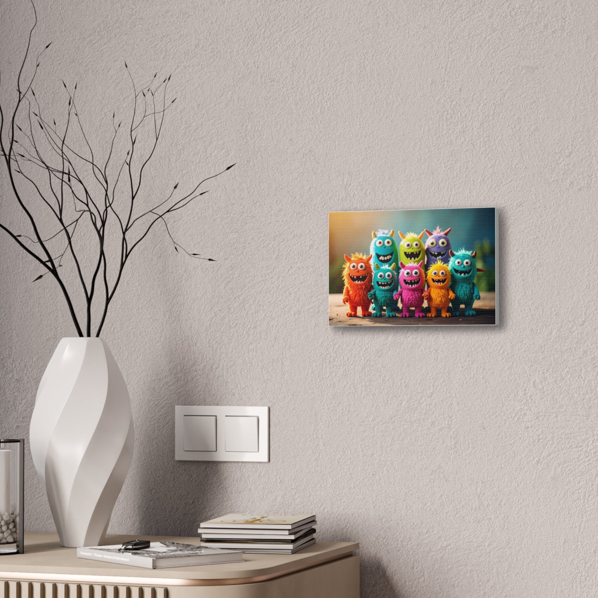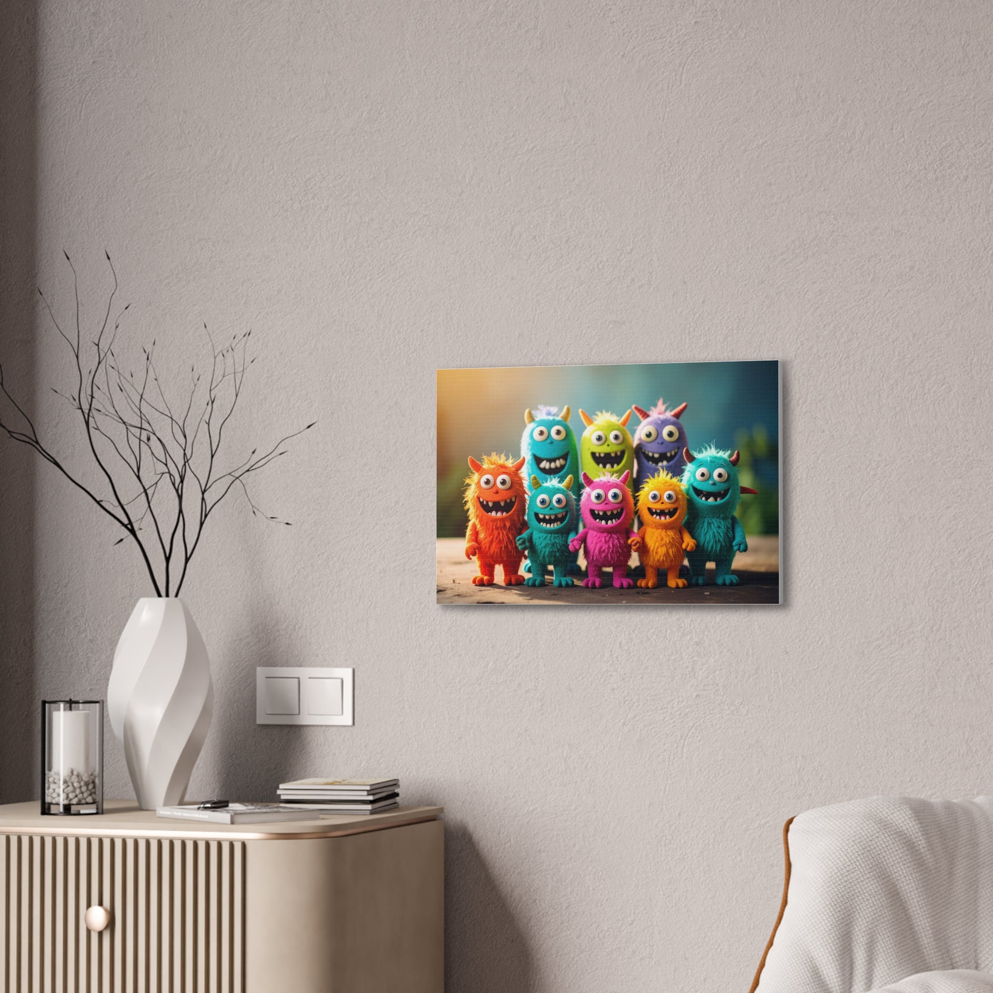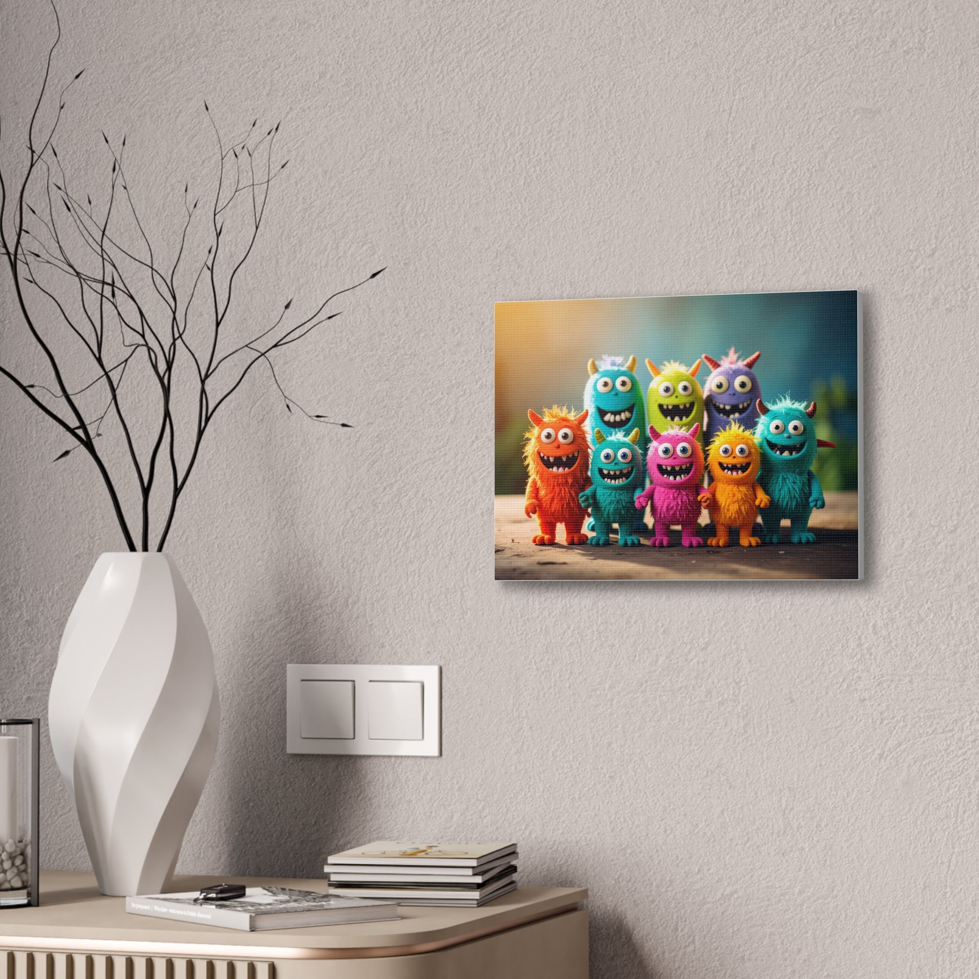 Brighten up your walls with this vibrant Canvas Print! Perfect for adding a touch of fun and whimsy to your home, this eye-catching artwork features adorable, colorful monster characters that are sure to bring a smile. Ideal for children's rooms or play areas, this canvas is perfect for those who appreciate playful decor. It creates a cheerful atmosphere, making it an excellent gift for birthdays or any celebration that calls for a burst of joy. With versatile sizing options, you can find the ideal fit for your space. This canvas print is not just a decoration; it's a source of laughter and warmth, perfect for families, kids, or anyone young at heart.