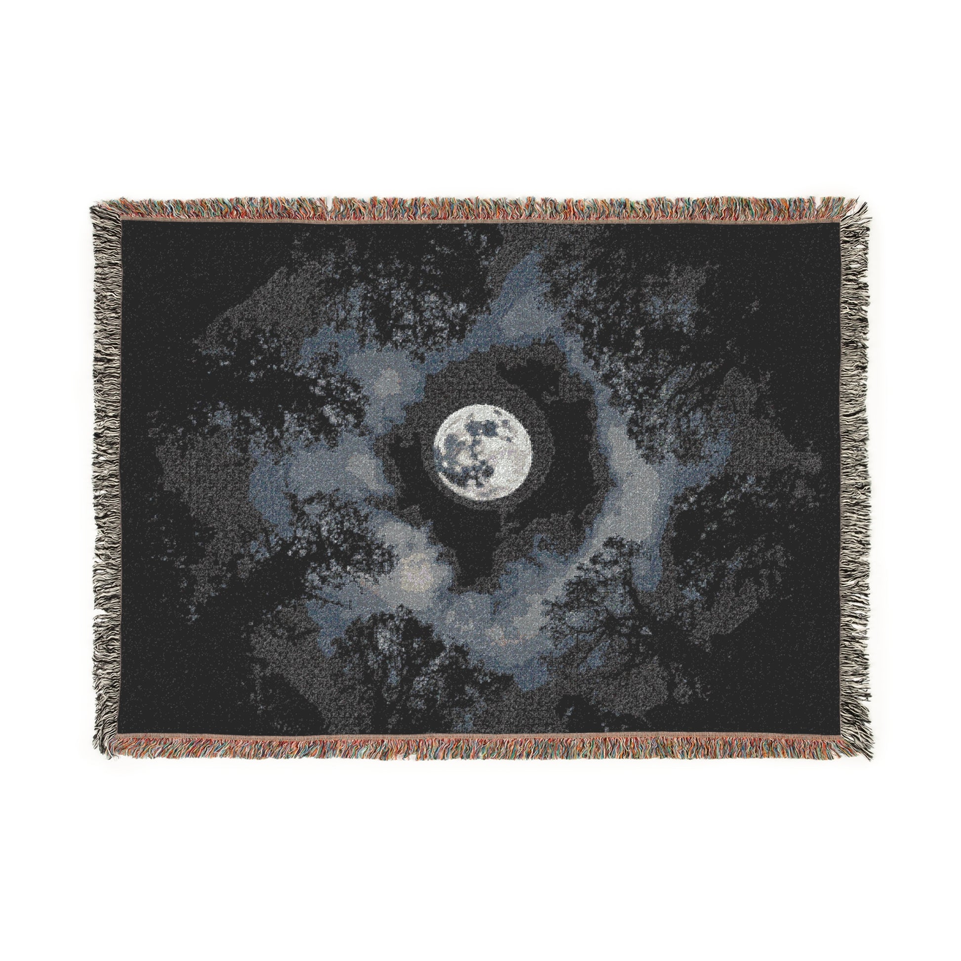 Wrap yourself in the mystical beauty of a moonlit night sky with this woven blanket. Perfect for cozy nights in or as a decorative piece in your home. Ideal for nature lovers and stargazers, this blanket is a great addition to your living space or a thoughtful gift for a loved one. Relevant for birthdays, holidays, and housewarmings.